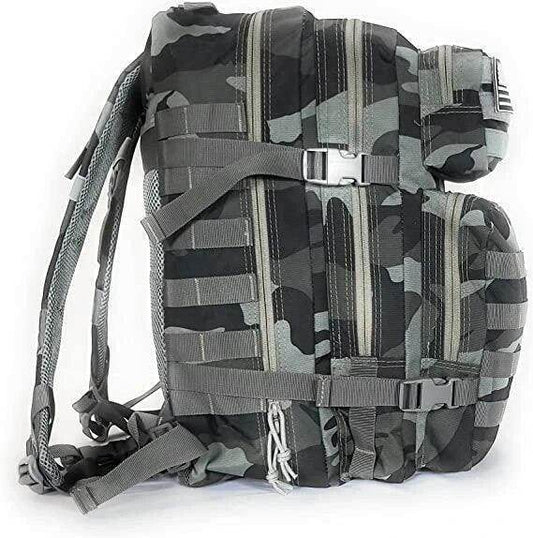 Large capacity tactical backpack made of OXFORD 900D resistant and durable material with approximate dimensions of 50cm * 30cm * 30cm and a weight of approximately 1.25 kilos.